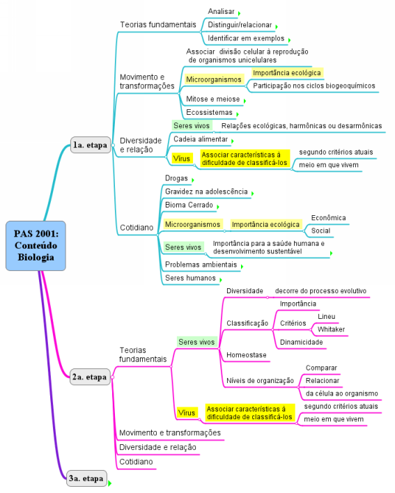 Dê uma olhada no mapa mental a seguir, de um já meio antigo conteúdo programático de Biologia do PAS da UnB.