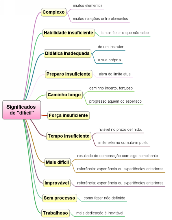 Abaixo um sumário rápido das possibilidades apresentadas para o significado do conceito de difícil.