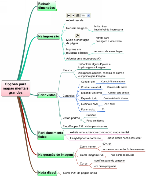 - Imprimir em múltiplas páginas. Se o mapa mental será impresso, pode ser usada a impressão em múltiplas páginas, que devem ser naturalmente recortadas e montadas.