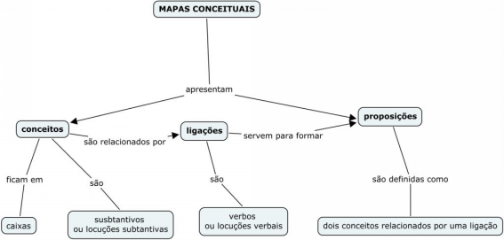 Há um diagrama definido formalmente, o mapa conceitual, que permite quaisquer ligações entre os tópicos, e essas ligações também têm texto. A figura abaixo mostra uma mapa conceitual sobre os próprios mapas conceituais.