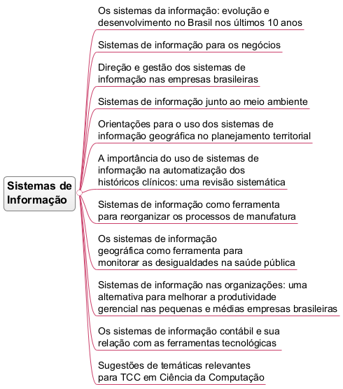 O aspecto mais importante do mapa mental de temas (e de qualquer outro) é que ele possa contribuir para um objetivo, que no caso é definir um tema para um TCC. Vamos ver algumas opções para isso.