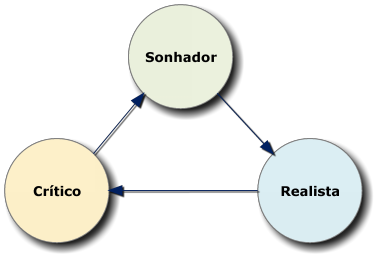 Uma forma de pensar geralmente interfere em outra; por exemplo, avaliar interrompe um fluxo de planejamento ou de criatividade. Disney sabia disso, e tinha até mesmo salas próprias para cada papel. Os papéis não eram desempenhados por pessoas específicas, eram etapas de um fluxo de trabalho iterativo (cíclico).